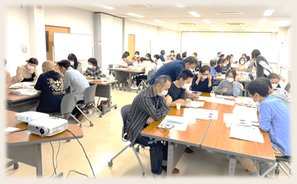 プライベートでも豊かな人間形成は不可欠と考え、全社員に基礎研修を実施しており、社員間での「共通言語」を浸透させています。年をいくつ重ねても「勉強が楽しい」と感じる欲求は誰もが備えており、それを刺激する為に詰め込み式「教育」ではなく、自ら考え発言する事で深堀を促すグループワーク「学習」を主にしています。