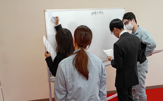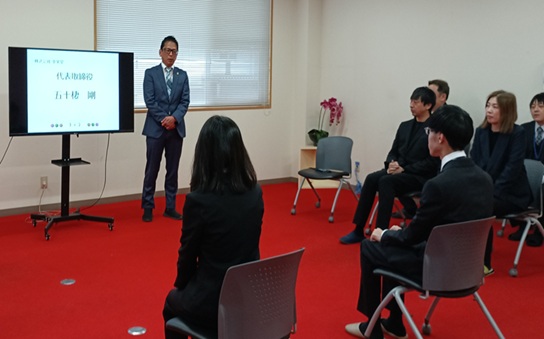 社内行事 · 2025/04/01 2025年度 入社式 今年も新たに新卒社員を迎え入れる日が来ました^^ 人事にとって、1年間の頑張りがこの入社式に集約される気持ちで嬉しい限りです。 例年のことですが、入社式の後は「先輩社員と一緒に読書会」です。 過去の「代表メッセージ」を先輩社員と共に読み、解釈し、発表することにより互いを理解して欲しく思います。 新卒社員の積極的な行動が印象的でした! tagPlaceholderカテゴリ: