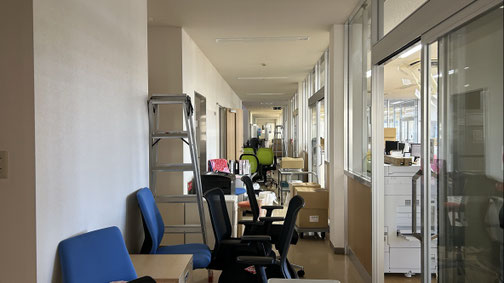 廊下は什器、備品で溢れていました。